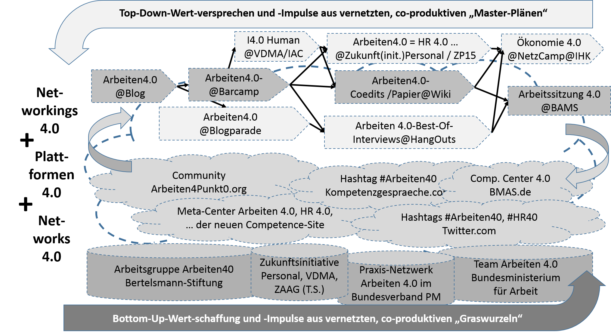 Es hängt aber von uns ab, ob dieser Anfang und andere Anfänge zum wirklichen Erfolg für (Arbeiten) 4.0 im Sinne eines breiten Bewusstseins- und Strukturwandel werden oder „nur“ implodieren im Sinne z.B. eines weiteren Arbeitspapiers ohne Breiteneffekt (was als Baustein wichtig ist, aber nicht Gesamtergebnis sein kann).