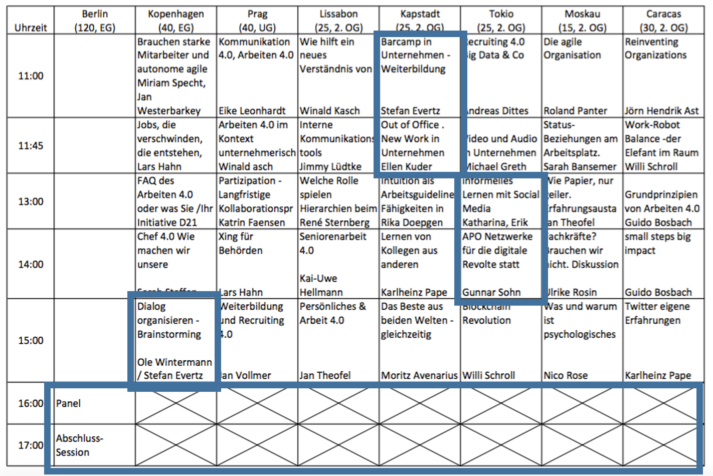 Abb 0: Sessions „meines“ Barcamps Arbeiten 4.0
